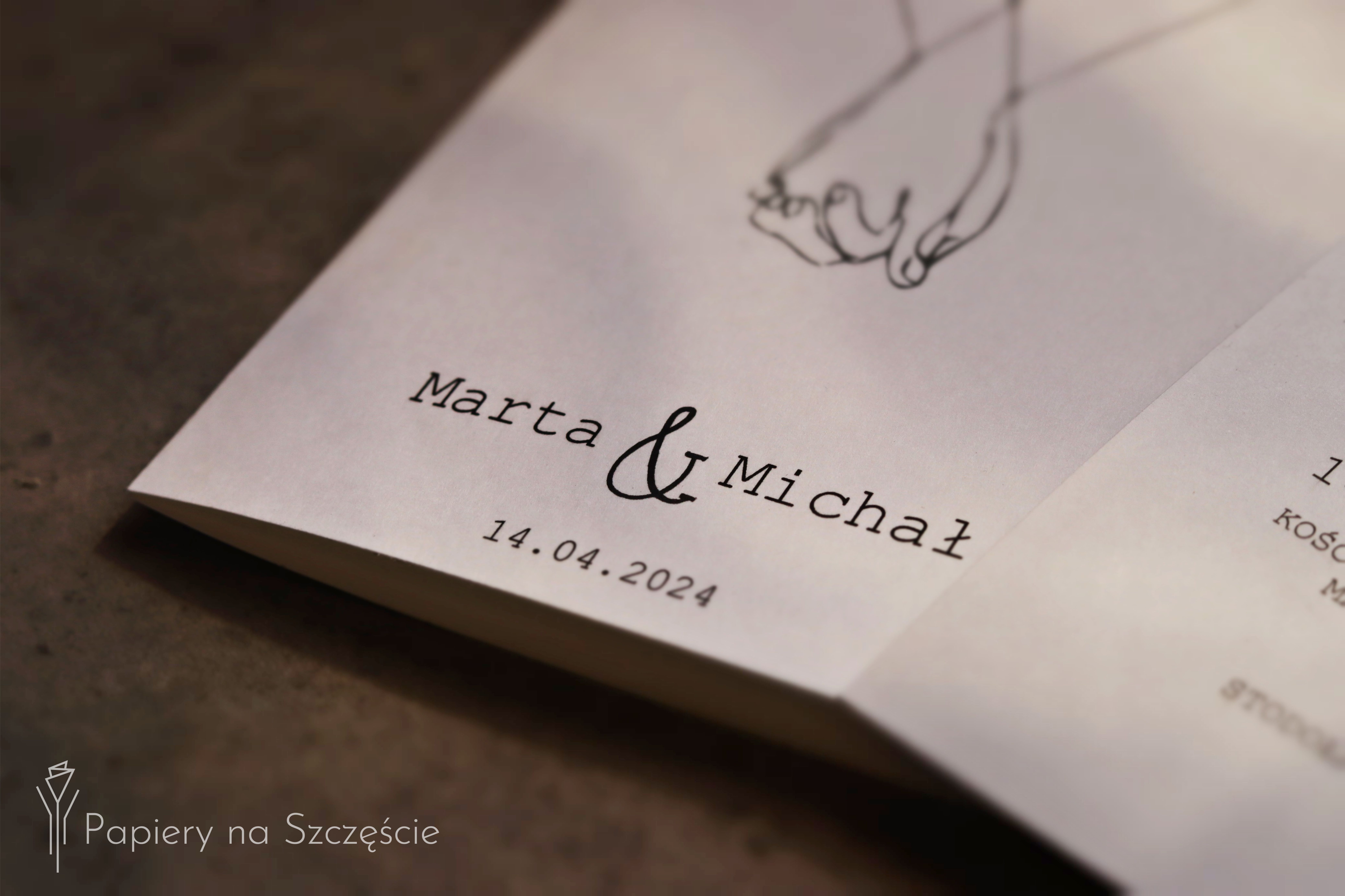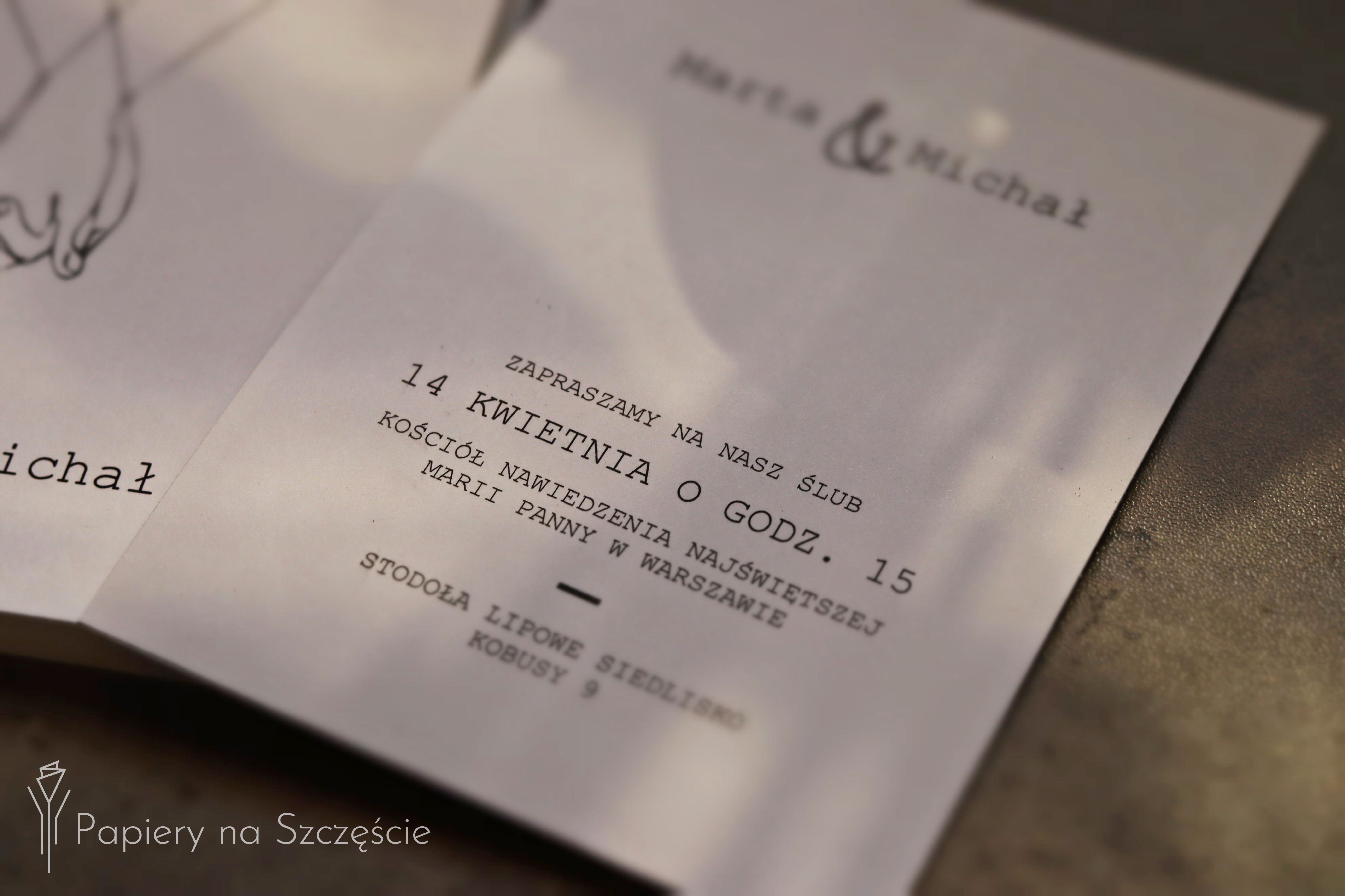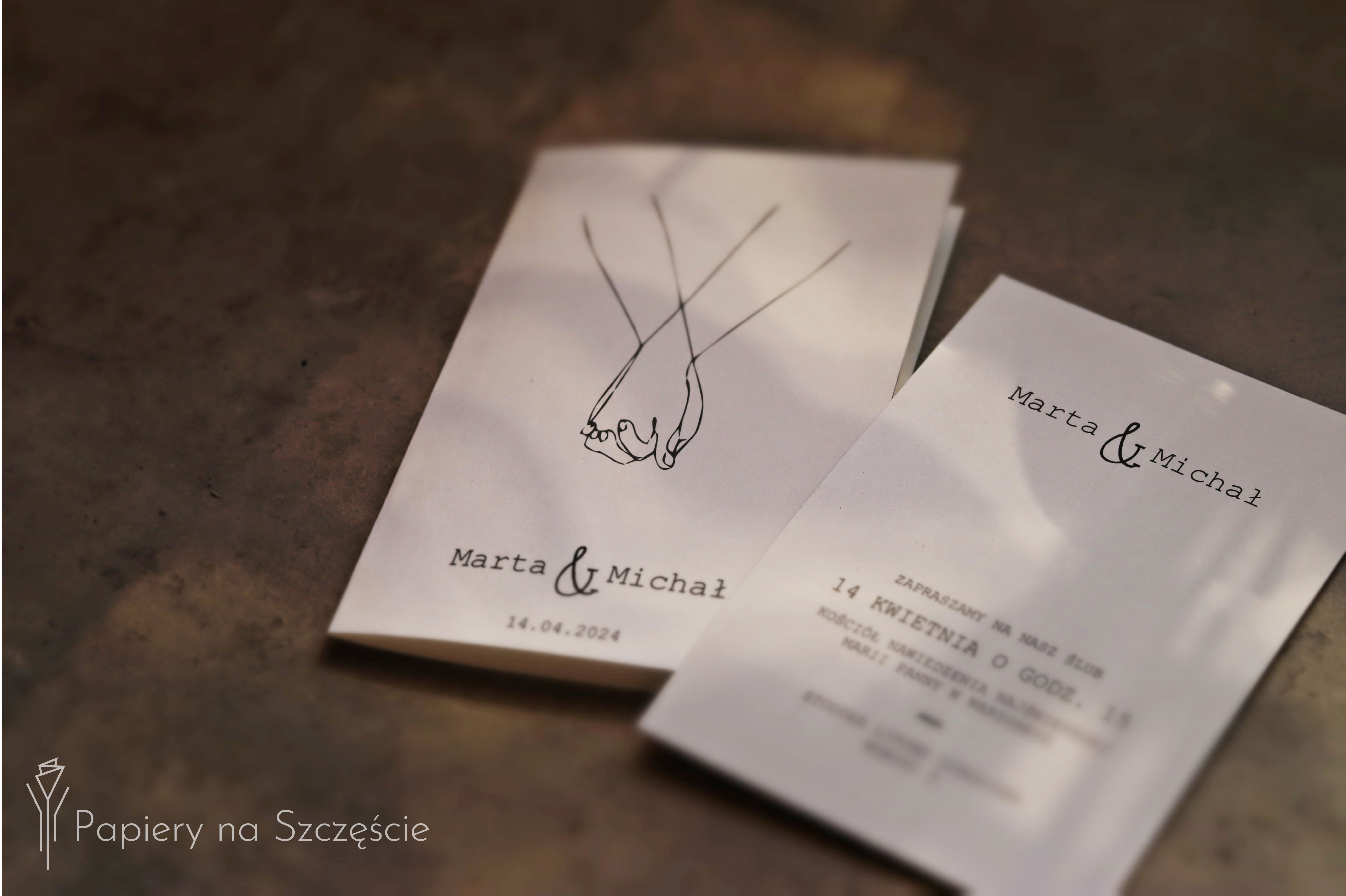 Zaproszenie ślubne „Dłonie” to bardzo minimalistyczny i stylowy projekt, w kolorach bieli i czerni.